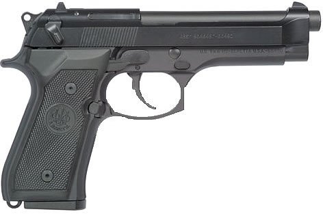 The M9 features an open slide design that virtually eliminated jamming, a safety system that combines de-cocking with a positive thumb safety, and a combat muzzle crown. Also featuring Bruniton non-glare black finish.